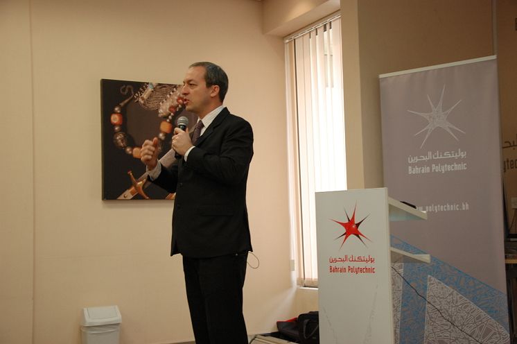 Mark Laudi at the Bahrain Polytechnic for his session on presentation skills.
