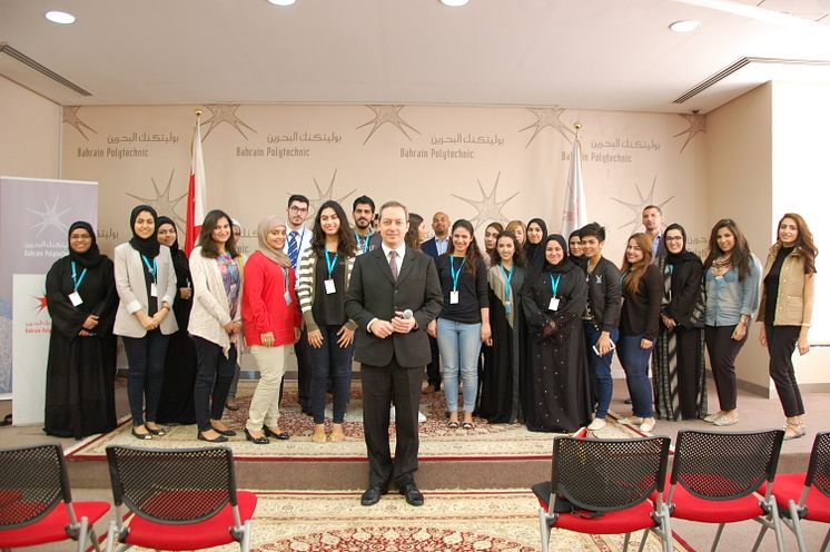 Mark Laudi, with the participants of his presentation skills training session at the Bahrain Polytechnic on November 26, 2015.