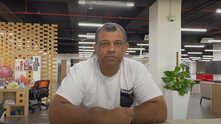 Fernandes balances the informal and the formal. He wears a T-shirt and communicates directly. He makes eye contact with the camera, and does not use much jargon.