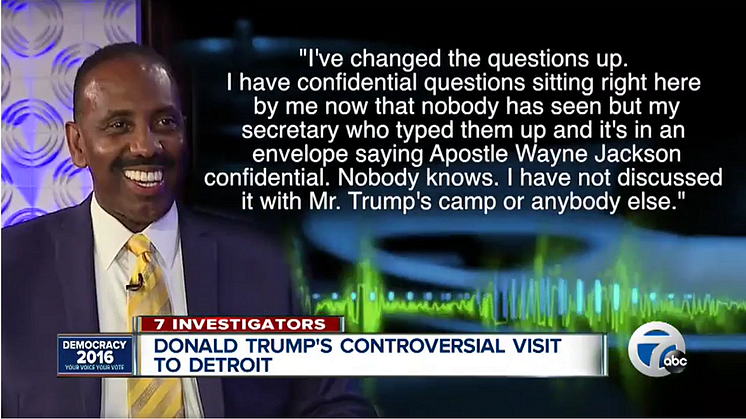 "Instead of speaking to the congregation at Great Faith Ministries International, Mr. Trump had planned to be interviewed by its pastor in a session that would be closed to the public and the news media, with questions submitted in advance. And instead of letting Mr. Trump be his freewheeling self, his campaign prepared lengthy answers for the submitted questions, consulting black Republicans to make sure he says the right things.